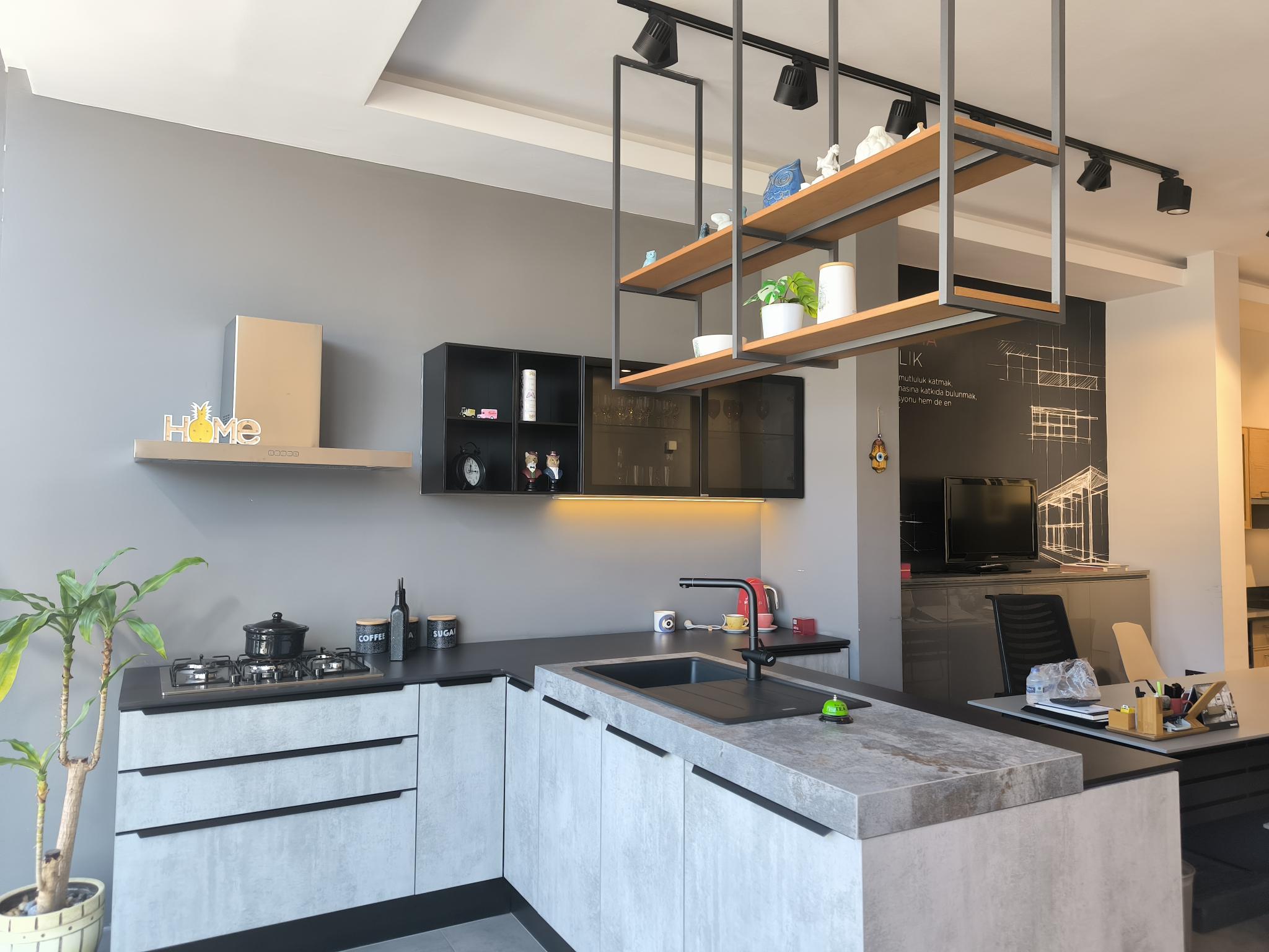 Tezgah ve Cihazlar: Silestone Tezgah , Duvar kaplaması, Franke /Evye, Batarya, Franke /Tam ankastre bulaşık makinası fiyata dahildir.